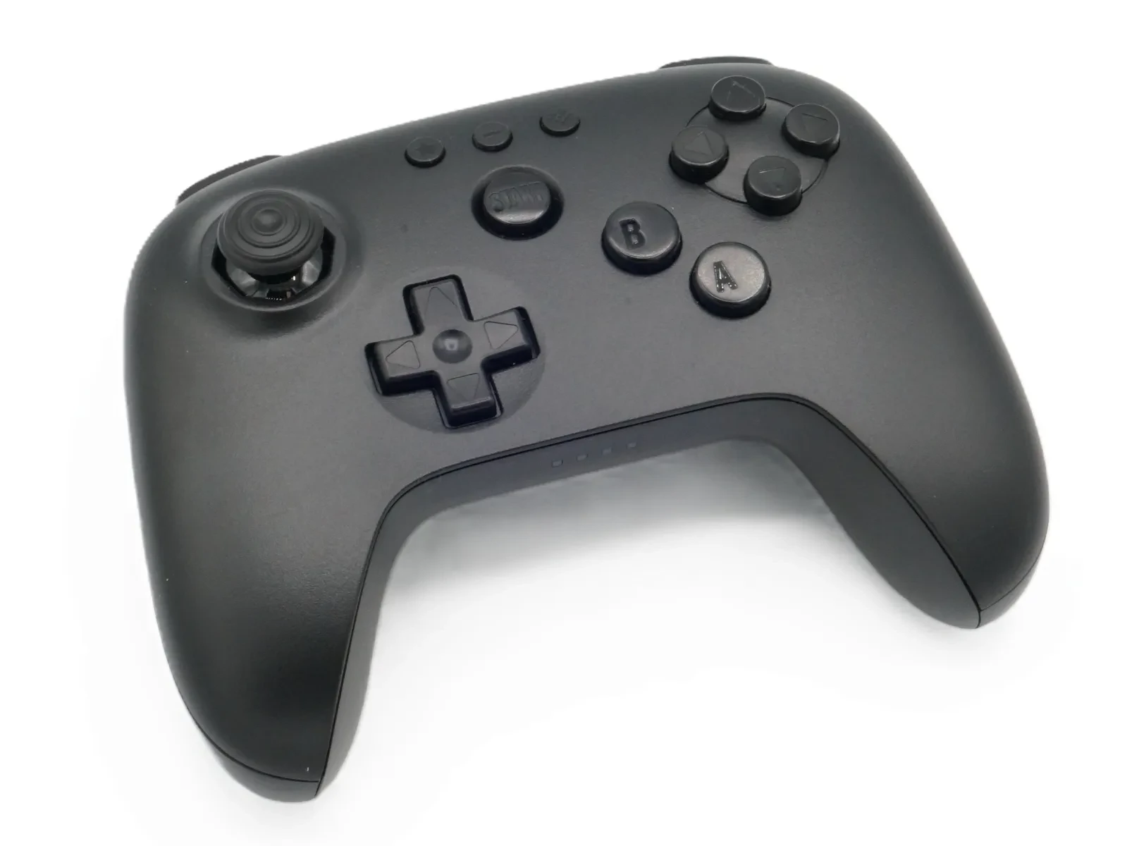 Der 8BitDo 64 Bluetooth Controller verzichtet auf den unhandlichen Mittelfuss des Originals und setzt stattdessen auf ein modernes Design mit zwei Schultertasten (L/R) und zwei Triggern (ZL/ZR). Die Rumble-Funktion ist direkt im Gehäuse integriert, sodass kein externes Rumble-Pak mehr nötig ist. Zudem verfügt er über eine zuschaltbare Turbo-Funktion und zwei zusätzliche, programmierbare Tasten auf der Rückseite.