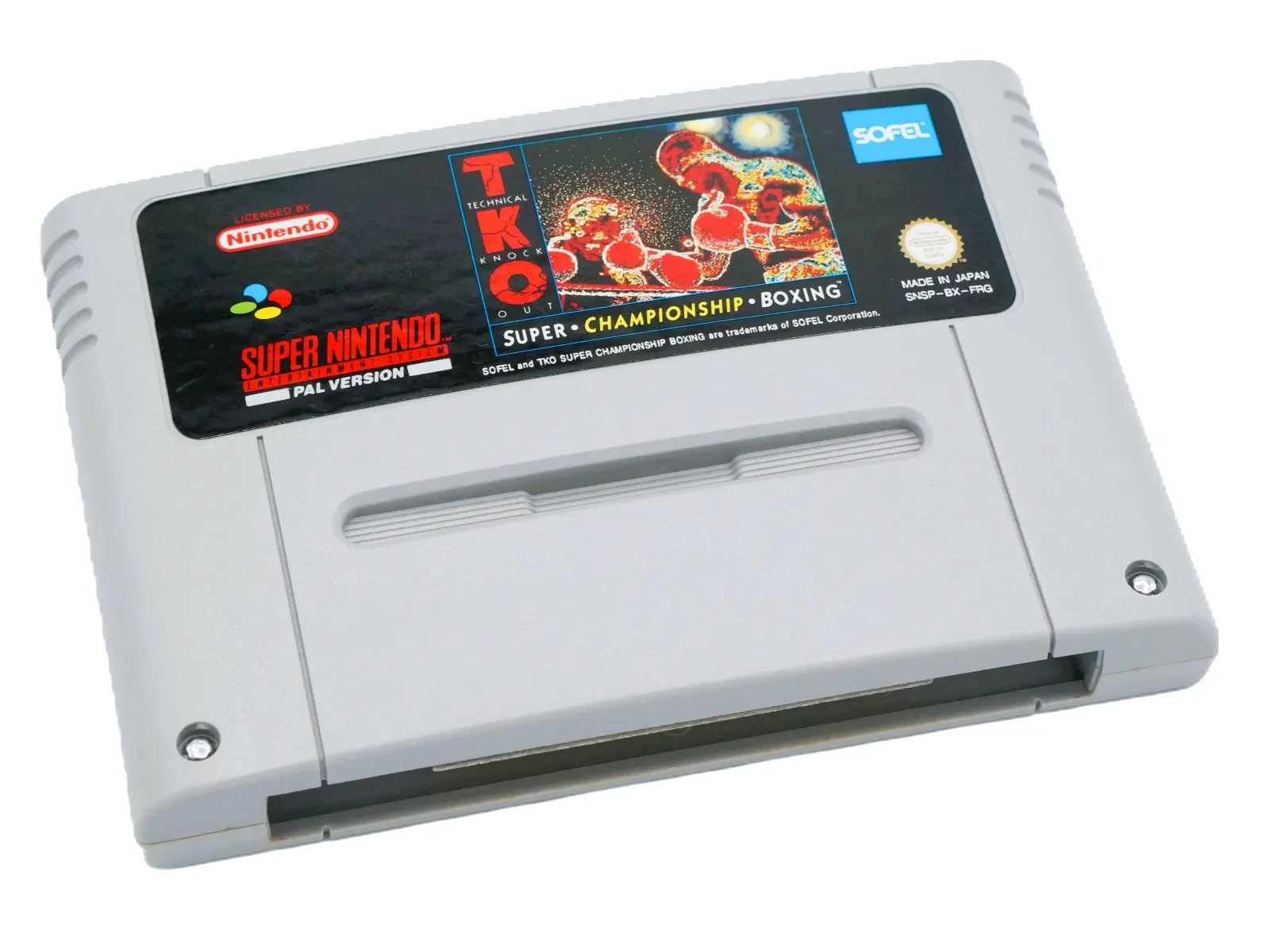 1992 brachte Sofel TKO Super Championship Boxing für das SNES heraus. Entwickelt von Sting, kombiniert das Spiel Boxkämpfe, Trainingsabschnitte und verschiedene Schwierigkeitsgrade, um den Weg zum Champion möglichst spannend zu gestalten.