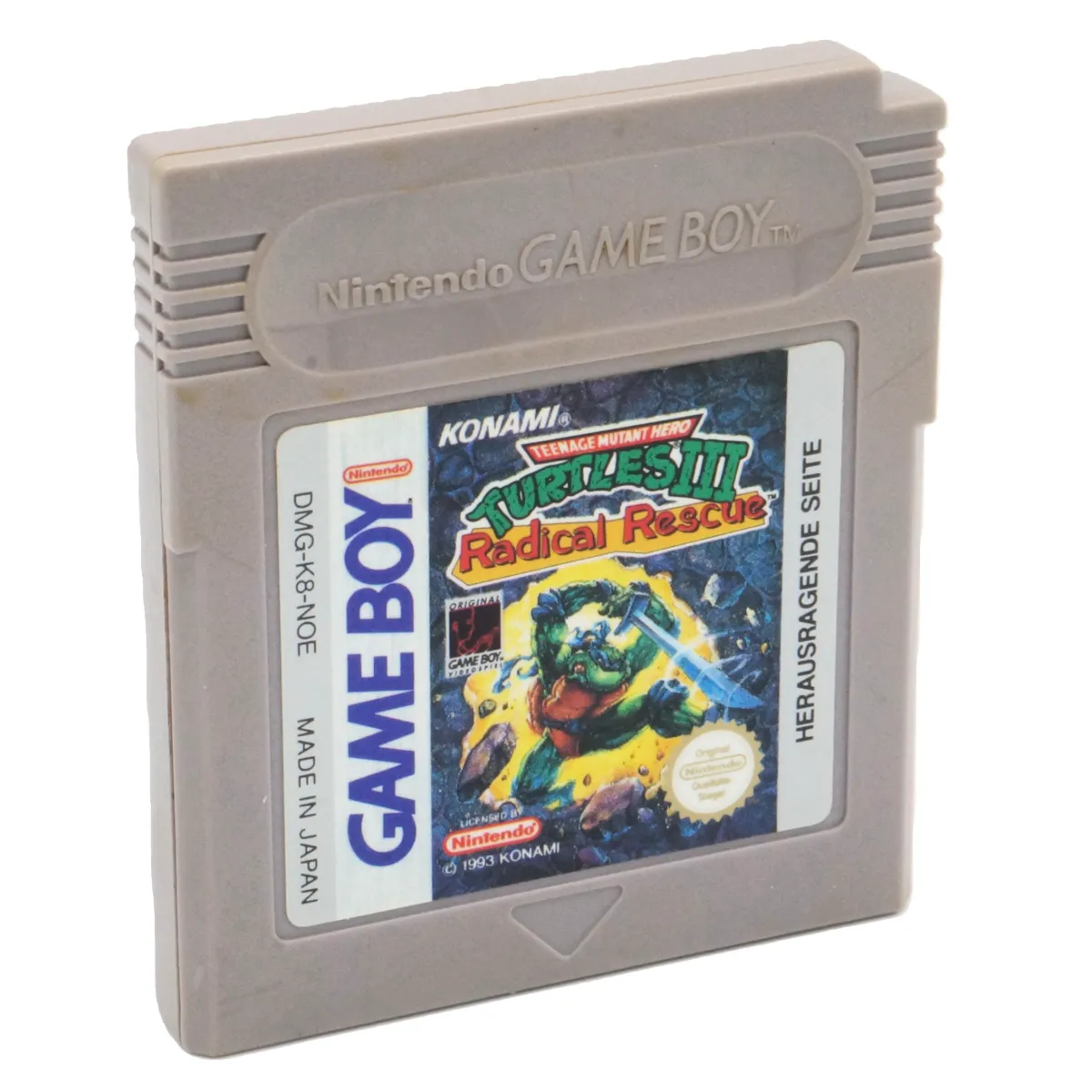 Mit Turtles III: Radical Rescue, 1993 von Konami für den Game Boy veröffentlicht, wurde das klassische Turtles-Gameplay um spannende Metroidvania-Elemente erweitert. In diesem actiongeladenen Abenteuer begibst du dich als Michelangelo auf eine Rettungsmission, um deine Brüder und Splinter zu befreien – alles in einem labyrinthartigen Verlies voller Feinde und Fallen.